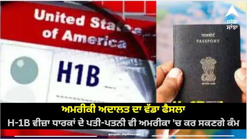 Good News For H-1B Visa Holders : ਅਮਰੀਕਾ 'ਚ ਕੰਮ ਕਰਦੇ ਵਿਦੇਸ਼ੀ ਕਰਮਚਾਰੀਆਂ ਨੂੰ ਲੈ ਕੇ ਅਦਾਲਤ ਨੇ ਵੱਡਾ ਫੈਸਲਾ ਸੁਣਾਇਆ ਹੈ। ਇਕ ਮਾਮਲੇ ਦੀ ਸੁਣਵਾਈ ਤੋਂ ਬਾਅਦ ਆਪਣੇ ਫੈਸਲੇ 'ਚ ਅਦਾਲਤ ਨੇ ਕਿਹਾ, ਐੱਚ-1ਬੀ ਵੀਜ਼ਾ ਧਾਰਕ ਦੇ ਜੀਵਨ ਸਾਥੀ (ਪਤੀ ਜਾਂ ਪਤਨੀ) ਨੂੰ ਵੀ ਅਮਰੀਕਾ 'ਚ ਕੰਮ ਕਰਨ ਦੀ ਇਜਾਜ਼ਤ ਹੈ।