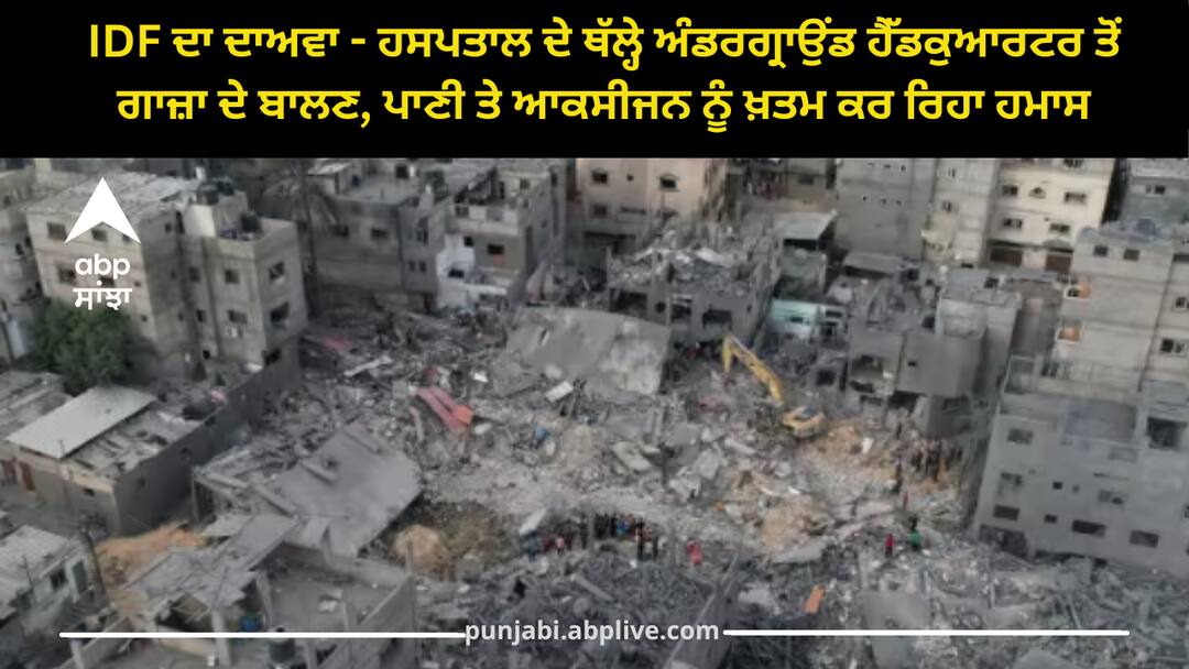 Israel Palestine Conflict: ਇਜ਼ਰਾਈਲ ਨਾਲ ਜੰਗ 'ਚ ਸ਼ਾਮਲ ਕੱਟੜਪੰਥੀ ਸੰਗਠਨ ਹਮਾਸ ਨੂੰ ਲੈ ਕੇ ਇਜ਼ਰਾਇਲੀ ਫੌਜ ਨੇ ਵੱਡਾ ਦਾਅਵਾ ਕੀਤਾ ਹੈ। ਇਜ਼ਰਾਈਲ ਰੱਖਿਆ ਬਲਾਂ ਦਾ ਕਹਿਣਾ ਹੈ ਕਿ ਹਮਾਸ ਦੇ ਅੱਤਵਾਦੀ ਹਸਪਤਾਲ ਦੇ ਅਧੀਨ ਹੈੱਡਕੁਆਰਟਰ ਤੋਂ ਕਾਰਵਾਈ ਕਰ ਰਹੇ ਹਨ। IDF ਨੇ ਦਾਅਵਾ ਕੀਤਾ ਹੈ ਕਿ ਹਮਾਸ ਸੰਗਠਨ ਲੋਕਾਂ ਤੋਂ ਲੋੜੀਂਦੀਆਂ ਚੀਜ਼ਾਂ ਲੈ ਰਿਹਾ ਹੈ ਅਤੇ ਆਪਣੇ ਅੱਤਵਾਦੀ ਉਦੇਸ਼ਾਂ ਲਈ ਉਨ੍ਹਾਂ ਦੀ ਵਰਤੋਂ ਕਰ ਰਿਹਾ ਹੈ।