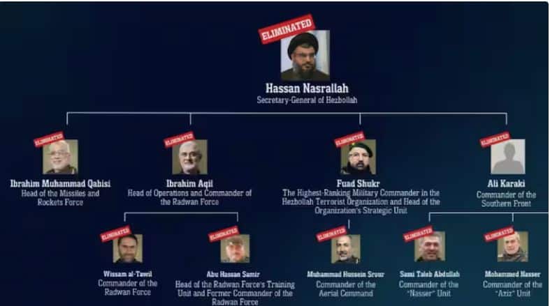 ਇਜ਼ਰਾਈਲ ਦੀ ਫੌਜ ਨੇ ਕਿਹਾ ਹੈ ਕਿ ਉਸਨੇ ਇਸ ਸਾਲ ਹਿਜ਼ਬੁੱਲਾ ਦੇ ਨੌਂ ਸਭ ਤੋਂ ਸੀਨੀਅਰ ਫੌਜੀ ਕਮਾਂਡਰਾਂ ਵਿੱਚੋਂ ਅੱਠ ਨੂੰ ਮਾਰ ਦਿੱਤਾ ਹੈ, ਜਿਸ ਵਿੱਚ ਨਸਰੱਲਾ ਵੀ ਸ਼ਾਮਲ ਹੈ, ਜਿਨ੍ਹਾਂ ਵਿੱਚੋਂ ਜ਼ਿਆਦਾਤਰ ਪਿਛਲੇ ਹਫ਼ਤੇ ਵਿੱਚ ਮਾਰੇ ਗਏ ਹਨ। ਜੇ ਨਿਊਜ਼ ਏਜੰਸੀ ਰਾਇਟਰਜ਼ ਦੀ ਰਿਪੋਰਟ 'ਤੇ ਵਿਸ਼ਵਾਸ ਕੀਤਾ ਜਾਵੇ ਤਾਂ ਇਨ੍ਹਾਂ ਕਮਾਂਡਰਾਂ ਨੇ ਰਾਕੇਟ ਡਿਵੀਜ਼ਨ ਤੋਂ ਲੈ ਕੇ ਕੁਲੀਨ ਰਾਡਵਾਨ ਫੋਰਸ ਤੱਕ ਦੀਆਂ ਇਕਾਈਆਂ ਦੀ ਅਗਵਾਈ ਕੀਤੀ ਸੀ।