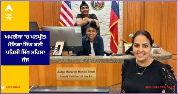 Indian Origin Manpreet Monica Singh Sworn: ਅਮਰੀਕਾ ਵਿੱਚ ਇੱਕ ਵਾਰ ਫਿਰ ਭਾਰਤ ਦਾ ਝੰਡਾ ਲਹਿਰਾਇਆ ਗਿਆ ਹੈ। ਇੱਥੇ ਭਾਰਤੀ ਮੂਲ ਦੀ ਮਨਪ੍ਰੀਤ ਮੋਨਿਕਾ ਸਿੰਘ ਨੇ ਹੈਰਿਸ ਕਾਊਂਟੀ ਵਿੱਚ ਜੱਜ ਵਜੋਂ ਸਹੁੰ ਚੁੱਕੀ ਹੈ। ਇਸ ਨਾਲ ਉਹ ਜੱਜ ਬਣਨ ਵਾਲੀ ਅਮਰੀਕਾ ਦੀ ਪਹਿਲੀ ਸਿੱਖ ਮਹਿਲਾ ਬਣ ਗਈ ਹੈ।
