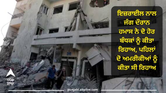 Israel Palestine Conflict: ਇਜ਼ਰਾਈਲ ਵਿਰੁੱਧ ਜੰਗ ਛੇੜ ਰਹੇ ਕੱਟੜਪੰਥੀ ਸੰਗਠਨ ਹਮਾਸ ਨੇ ਸੋਮਵਾਰ (23 ਅਕਤੂਬਰ) ਨੂੰ ਕਿਹਾ ਕਿ ਉਸ ਨੇ ਦੋ ਹੋਰ ਬੰਧਕਾਂ ਨੂੰ ਰਿਹਾਅ ਕਰ ਦਿੱਤਾ ਹੈ। ਦੋਵੇਂ ਔਰਤਾਂ ਹਨ। ਉਸ ਨੂੰ 7 ਅਕਤੂਬਰ ਦੇ ਹਮਲੇ ਤੋਂ ਬਾਅਦ ਹੋਰਨਾਂ ਨਾਲ ਬੰਧਕ ਬਣਾ ਲਿਆ ਗਿਆ ਸੀ। ਨਿਊਜ਼ ਏਜੰਸੀ ਏਐਫਪੀ ਮੁਤਾਬਕ ਹਮਾਸ ਨੇ ਕਿਹਾ ਕਿ ਉਸ ਨੇ ਕਤਰ ਅਤੇ ਮਿਸਰ ਦੀ ਵਿਚੋਲਗੀ ਕਾਰਨ ਮਨੁੱਖੀ ਕਾਰਨਾਂ ਕਰਕੇ ਦੋਵਾਂ ਨੂੰ ਰਿਹਾਅ ਕੀਤਾ ਹੈ। ਇਸ ਤੋਂ ਪਹਿਲਾਂ ਹਮਾਸ ਨੇ ਅਮਰੀਕੀ ਮਾਂ-ਧੀ ਨੂੰ ਰਿਹਾਅ ਕੀਤਾ ਸੀ। ਫਿਲਹਾਲ ਹਮਾਸ ਵੱਲੋਂ ਰਿਹਾਅ ਕੀਤੀਆਂ ਗਈਆਂ ਦੋ ਔਰਤਾਂ ਬਾਰੇ ਇਜ਼ਰਾਈਲ ਵੱਲੋਂ ਕੋਈ ਬਿਆਨ ਨਹੀਂ ਆਇਆ ਹੈ।