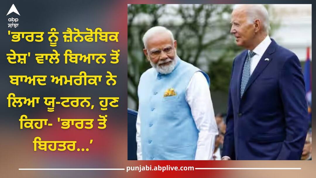 Joe Biden Called India Xenophobic Country: ਕੁੱਝ ਦਿਨ ਪਹਿਲਾਂ ਅਮਰੀਕਾ ਦੇ ਰਾਸ਼ਟਰਪਤੀ ਜੋ ਬਾਇਡਨ ਨੇ ਭਾਰਤ ਨੂੰ ਜ਼ੈਨੋਫੋਬਿਕ ਦੇਸ਼ ਦੱਸਿਆ ਸੀ। ਹੁਣ ਅਮਰੀਕਾ ਨੇ ਇਸ ਬਿਆਨ ਤੋਂ ਯੂ-ਟਰਨ ਲੈ ਲਿਆ ਹੈ। ਅਮਰੀਕਾ (america) ਨੇ ਹੁਣ ਭਾਰਤ ਦੀ ਤਾਰੀਫ ਕੀਤੀ ਹੈ ਅਤੇ ਸ਼ੁੱਕਰਵਾਰ ਯਾਨੀਕਿ 17 ਮਈ ਨੂੰ ਕਿਹਾ ਹੈ ਕਿ ਦੁਨੀਆ ਵਿੱਚ ਭਾਰਤ ਵਰਗਾ ਜੀਵੰਤ ਲੋਕਤੰਤਰ ਬਹੁਤ ਘੱਟ ਹੈ। ਵ੍ਹਾਈਟ ਹਾਊਸ ਦੇ ਬੁਲਾਰੇ ਜੌਹਨ ਕਿਰਬੀ ਨੇ ਪ੍ਰੈੱਸ ਕਾਨਫਰੰਸ 'ਚ ਕਿਹਾ ਕਿ ਦੁਨੀਆ 'ਚ ਅਜਿਹੇ ਬਹੁਤ ਸਾਰੇ ਦੇਸ਼ ਨਹੀਂ ਹਨ, ਜਿਨ੍ਹਾਂ 'ਚ ਭਾਰਤ ਤੋਂ ਜ਼ਿਆਦਾ ਜੀਵੰਤ ਲੋਕਤੰਤਰ ਹੈ। ਅਸੀਂ ਭਾਰਤ ਦੇ ਲੋਕਾਂ ਦੀ ਆਪਣੀ ਵੋਟ ਦਾ ਇਸਤੇਮਾਲ ਕਰਨ ਅਤੇ ਆਪਣੀ ਸਰਕਾਰ ਚੁਣਨ ਲਈ ਪ੍ਰਸ਼ੰਸਾ ਕਰਦੇ ਹਾਂ। ਅਸੀਂ ਉਸ ਨੂੰ ਸ਼ੁਭਕਾਮਨਾਵਾਂ ਦਿੰਦੇ ਹਾਂ।