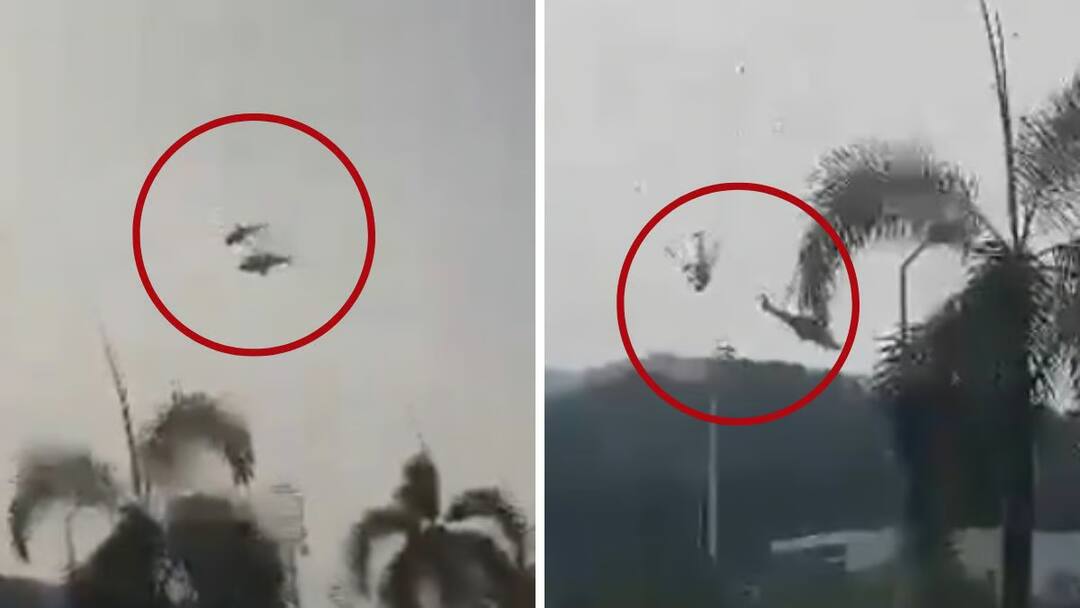 Helicopters Collide in Malaysia: ਮਲੇਸ਼ੀਆ ਵਿੱਚ ਨੇਵੀ ਦੇ ਇੱਕ ਸਮਾਗਮ ਲਈ ਅਭਿਆਸ ਦੌਰਾਨ ਦੋ ਹੈਲੀਕਾਪਟਰ ਹਵਾ ਵਿੱਚ ਟਕਰਾ ਗਏ ਅਤੇ ਕਰੈਸ਼ ਹੋ ਗਏ। ਮਲੇਸ਼ੀਅਨ ਨੇਵੀ ਦੇ ਦੋਵੇਂ ਹੈਲੀਕਾਪਟਰ ਰਾਇਲ ਮਲੇਸ਼ੀਅਨ ਨੇਵੀ ਸੈਲੀਬ੍ਰੇਸ਼ਨ ਲਈ ਅਭਿਆਸ ਕਰ ਰਹੇ ਸਨ। ਸਥਾਨਕ ਮੀਡੀਆ ਰਿਪੋਰਟਾਂ 'ਚ ਕਿਹਾ ਜਾ ਰਿਹਾ ਹੈ ਕਿ ਦੋਵੇਂ ਹੈਲੀਕਾਪਟਰਾਂ 'ਚ ਚਾਲਕ ਦਲ ਦੇ ਘੱਟੋ-ਘੱਟ 10 ਮੈਂਬਰ ਸਵਾਰ ਸਨ। ਦੱਸਿਆ ਜਾ ਰਿਹਾ ਹੈ ਕਿ ਸਾਰੇ ਲੋਕ ਮਰ ਚੁੱਕੇ ਹਨ।
