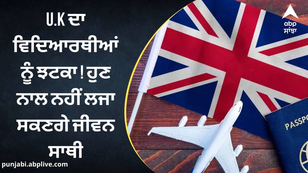 UK ban spouse visa: ਪੜ੍ਹਾਈ ਲਈ ਬ੍ਰਿਟੇਨ (ਯੂ.ਕੇ.) ਜਾਣ ਵਾਲੇ ਵਿਦਿਆਰਥੀਆਂ ਨੂੰ ਹੁਣ ਸਪਾਊਸ ਵੀਜ਼ਾ ਦੀ ਸਹੂਲਤ ਨਹੀਂ ਮਿਲੇਗੀ। ਯੂਕੇ ਸਰਕਾਰ ਨੇ ਹੁਣ ਇਹ ਸਹੂਲਤ ਬੰਦ ਕਰ ਦਿੱਤੀ ਹੈ। ਇਸ ਫੈਸਲੇ ਨਾਲ ਪੜ੍ਹਾਈ ਲਈ ਯੂਕੇ ਜਾਣ ਵਾਲੇ ਵਿਦਿਆਰਥੀ ਆਪਣੇ ਜੀਵਨ ਸਾਥੀ ਨੂੰ ਨਾਲ ਨਹੀਂ ਲਿਜਾ ਸਕਣਗੇ। ਹਾਲਾਂਕਿ ਇਹ ਫੈਸਲਾ ਇਸ ਸਾਲ ਸਤੰਬਰ 'ਚ ਜਾਣ ਵਾਲੇ ਵਿਦਿਆਰਥੀਆਂ 'ਤੇ ਲਾਗੂ ਨਹੀਂ ਹੋਵੇਗਾ।