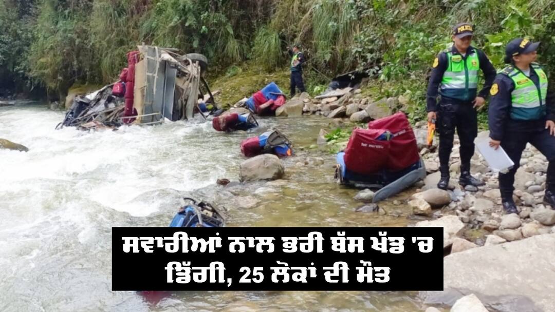 South America Bus accident: ਦੱਖਣੀ ਅਮਰੀਕੀ ਦੇ ਦੇਸ਼ ਪੇਰੂ 'ਚ ਸੋਮਵਾਰ ਨੂੰ ਇਕ ਬੱਸ ਦੇ ਖਾਈ 'ਚ ਡਿੱਗਣ ਕਾਰਨ ਘੱਟੋ-ਘੱਟ 25 ਲੋਕਾਂ ਦੀ ਦਰਦਨਾਕ ਮੌਤ ਹੋ ਗਈ। ਇਹ ਹਾਦਸਾ ਉੱਤਰੀ ਪੇਰੂ ਵਿੱਚ ਵਾਪਰਿਆ। ਖੇਤਰੀ ਅਧਿਕਾਰੀਆਂ ਨੇ ਦੱਸਿਆ ਕਿ ਉੱਤਰੀ ਪੇਰੂ ਵਿੱਚ ਇੱਕ ਬੱਸ ਪਹਾੜੀ ਸੜਕ ਤੋਂ ਖੱਡ ਵਿੱਚ ਡਿੱਗ ਗਈ, ਜਿਸ ਵਿੱਚ ਘੱਟੋ-ਘੱਟ 25 ਲੋਕਾਂ ਦੀ ਮੌਤ ਹੋ ਗਈ ਅਤੇ ਇੱਕ ਦਰਜਨ ਤੋਂ ਵੱਧ ਲੋਕ ਜ਼ਖਮੀ ਹੋ ਗਏ।