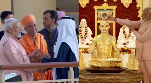 PM Modi in abu dhabi: ਪ੍ਰਧਾਨ ਮੰਤਰੀ ਨਰਿੰਦਰ ਮੋਦੀ ਨੇ ਅਬੂ ਧਾਬੀ, ਯੂਏਈ (ਸੰਯੁਕਤ ਅਰਬ ਅਮੀਰਾਤ) ਵਿੱਚ ਇੱਕ ਵਿਸ਼ਾਲ ਹਿੰਦੂ ਮੰਦਰ ਦਾ ਉਦਘਾਟਨ ਕੀਤਾ। BAPS (ਬੋਚਾਸਨਵਾਸੀ ਅਕਸ਼ਰ ਪੁਰਸ਼ੋਤਮ) ਸਵਾਮੀਨਾਰਾਇਣ ਮੰਦਰ 108 ਫੁੱਟ ਉੱਚਾ ਹੈ।