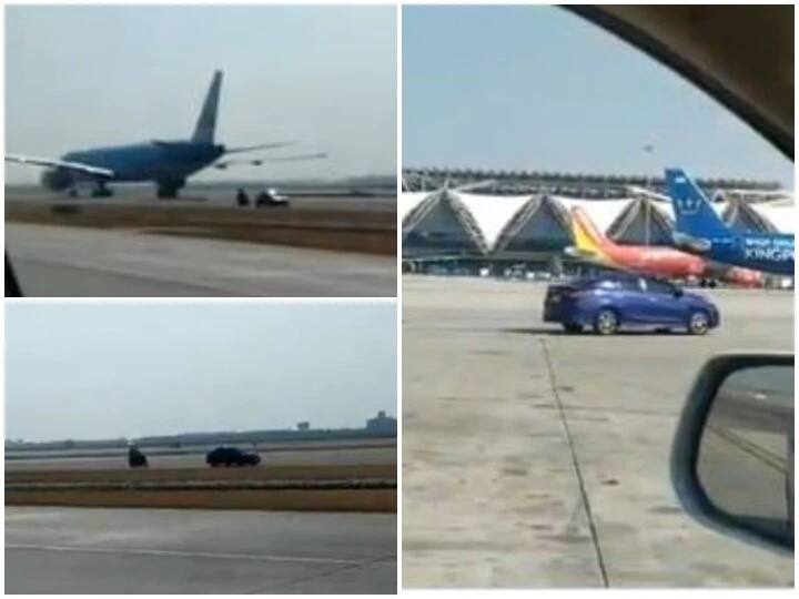 ਬੈਂਕਾਕ ਦੇ ਹਵਾਈ ਅੱਡੇ ਤੇ ਜਿਵੇਂ ਹੀ ਇਕ ਹਵਾਈ ਜਹਾਜ਼ ਲੈਂਡ ਕੀਤਾ ਤਾਂ ਉਸੇ ਸਮੇਂ ਇਕ ਕਾਰ ਰਨਵੇਅ 'ਤੇ ਦੇਖੀ ਗਈ। ਜਿਸ ਕਾਰਨ ਹਵਾਈ ਜਹਾਜ਼ 'ਚ ਬੈਠੇ ਯਾਤਰੀ ਸਹਿਮ ਗਏ। ਅਚਾਨਕ ਤੋਂ ਰਨਵੇਅ 'ਤੇ ਕਾਰ ਆਉਣ ਕਾਰਨ ਥਾਈਲੈਂਡ 'ਚ ਏਅਰਪੋਰਟ ਦੀ ਸਿਕਿਓਰਟੀ ਸਵਾਲਾਂ ਦੇ ਘੇਰੇ 'ਚ ਆ ਗਈ ਹੈ। ਹਾਲਾਂਕਿ ਹਵਾਈ ਅੱਡੇ ਦੇ ਕਰਮਚਾਰੀਆਂ ਨੇ ਤੁਰੰਤ ਐਕਸ਼ਨ ਲੈਂਦਿਆਂ ਕਾਰ ਚਾਲਕ ਨੂੰ ਰਨਵੇਅ ਤੋਂ ਦੂਰ ਕਰ ਦਿੱਤਾ।