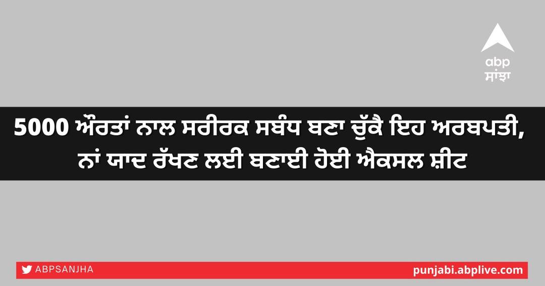 ਵਾਸ਼ਿੰਗਟਨ : ਇਕ ਅਰਬਪਤੀ ਨੇ 5000 ਔਰਤਾਂ ਨਾਲ ਕਥਿਤ ਤੌਰ 'ਤੇ ਸਬੰਧ ਬਣਾਏ ਤੇ ਸਾਰਿਆਂ ਔਰਤਾਂ ਦੇ ਨਾਂ ਯਾਦ ਰੱਖਣ ਲਈ ਐਕਸਲ ਸ਼ੀਟ ਬਣਾ ਕੇ ਰੱਖੀ ਹੈ। 57 ਸਾਲ ਦੇ ਮਾਈਕਲ ਗੋਗੁਅਨ ਵਿਆਹੇ ਹੋਏ ਹਨ ਤੇ ਦੋ ਬੱਚਿਆਂ ਦੇ ਪਿਤਾ ਹਨ। ਵੇਂਚਰ ਇਨਵੈਸਟਮੈਂਟ ਫਰਮ ਸਿਕੋਇਆ ਕੈਪੀਟਲ 'ਚ ਪਾਰਟਨਰ ਰਹੇ ਮਾਈਕਲ ਖੁਦ ਦੀ ਫਰਮ ਚਲਾਉਂਦੇ ਹਨ। 57 ਸਾਲ ਦੇ ਮਾਈਕਲ ਖਿਲਾਫ ਉਨ੍ਹਾਂ ਦੇ ਚਾਰ ਸਾਬਕਾ ਕਰਮਚਾਰੀਆਂ ਨੇ ਮਾਮਲਾ ਦਰਜ ਕਰਵਾਇਆ ਹੈ। ਕਰਮਚਾਰੀਆਂ ਨੇ ਦੋਸ਼ ਲਾਇਆ ਹੈ ਕਿ ਮਾਈਕਲ ਨੇ ਕਥਿਤ ਤੌਰ 'ਤੇ ਆਪਣੇ 'ਹਰਮ' ਦੀ ਦੇਖਰੇਖ ਕਰਨ 'ਚ ਉਨ੍ਹਾਂ ਦੀ ਮਦਦ ਮੰਗੀ ਸੀ।