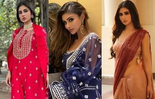 ਮੌਨੀ ਨੇ ਲਾਲ ਰੰਗ ਦਾ ਕਢਾਈ ਵਾਲਾ ਸੂਟ ਪਹਿਨਿਆ ਸੀ। ਆਪਣੀ ਲੁਕ ਪੂਰੀ ਕਰਨ ਲਈ ਉਨ੍ਹਾਂ ਚੋਕਰ ਨੈਕਪੀਸ ਤੇ ਈਅਰਿੰਗਸ ਪਹਿਨੇ ਸਨ। ਲੂਜ਼ ਹੇਅਰ ਤੇ ਸੌਫਟ ਮੇਕਅਪ 'ਚ ਉਹ ਬਹੁਤ ਹੀ ਪਿਆਰੀ ਲੱਗ ਰਹੀ ਸੀ।