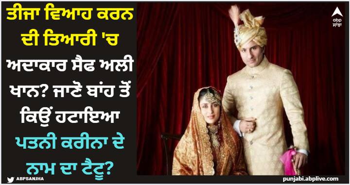 Saif Ali Khan: ਤੀਜਾ ਵਿਆਹ ਕਰਨ ਦੀ ਤਿਆਰੀ 'ਚ ਅਦਾਕਾਰ ਸੈਫ ਅਲੀ ਖਾਨ? ਜਾਣੋ ਬਾਂਹ ਤੋਂ ਕਿਉਂ ਹਟਾਇਆ ਪਤਨੀ ਕਰੀਨਾ ਦੇ ਨਾਮ ਦਾ ਟੈਟੂ?