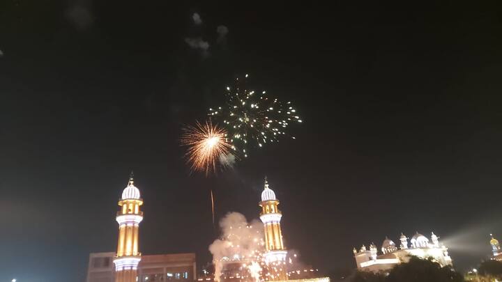 ਦਰਬਾਰ ਸਾਹਿਬ ਵਿਖੇ ਰਾਤ ਦੇ ਵੇਲੇ ਆਤਿਸ਼ਬਾਜ਼ੀ ਵੀ ਹੋਈ।