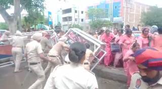 ਇਸ ਦੌਰਾਨ ਪੁਲਿਸ ਵੱਲੋਂ ਉਨ੍ਹਾਂ ਨਾਲ ਧੱਕਾਮੁੱਕੀ ਕੀਤੀ ਗਈ।