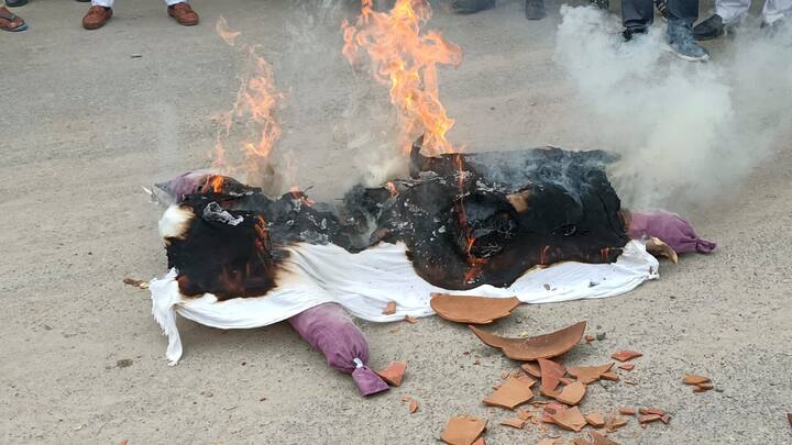 ਠੇਕਾ ਆਧਾਰਤ ਕਾਮਿਆਂ ਦਾ ਪੰਜਾਬ ਸਰਕਾਰ ਖ਼ਿਲਾਫ਼ ਅਰਥੀ ਫੂਕ ਪ੍ਰਦਰਸ਼ਨ