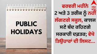 Public Holiday: ਫਰਵਰੀ ਮਹੀਨੇ 2 ਅਤੇ 3 ਤਰੀਕ ਨੂੰ ਨਹੀਂ ਲੱਗਣਗੇ ਸਕੂਲ, ਕਾਲਜ ਸਣੇ ਬੰਦ ਰਹਿਣਗੇ ਸਰਕਾਰੀ ਦਫ਼ਤਰ; ਵੇਖੋ ਤਿਉਹਾਰਾਂ ਦੀ ਲਿਸਟ...