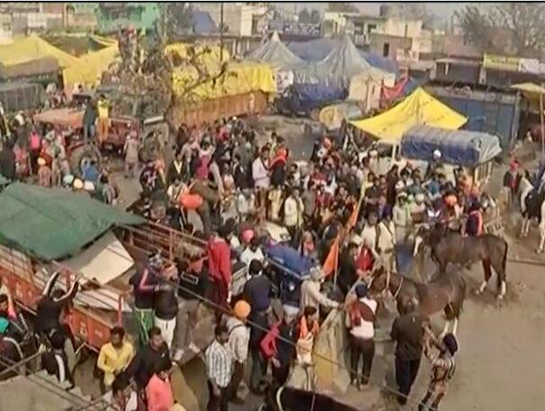 ਪੁਲਿਸ ਵੱਲੋਂ ਪੈਦਲ ਜਾਣ ਵਾਲਾ ਰਸਤਾ ਬੰਦ ਕੀਤਾ ਜਾ ਰਿਹਾ ਹੈ ਜਿਸ ਦਾ ਵਿਰੋਧ ਨਿਹੰਗ ਸਿੰਘਾਂ ਨੇ ਕੀਤਾ ਹੈ।