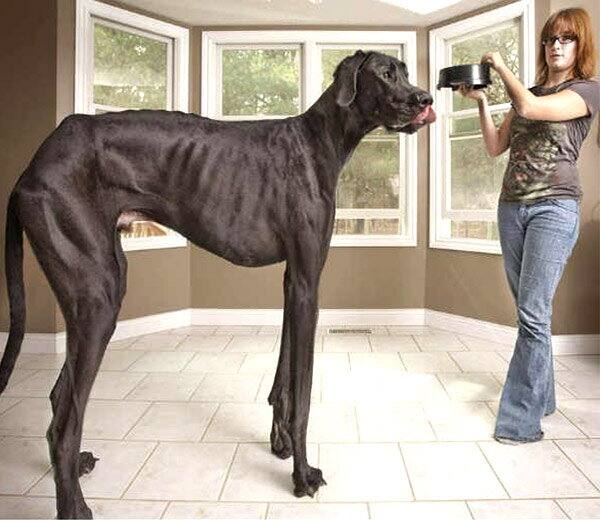 ਗਿਨੀਜ਼ ਬੁੱਕ ਵਿੱਚ ਦਰਜ ਕੁੱਝ ਰਿਕਾਰਡ। ਦੁਨੀਆ ਦਾ ਸਭ ਤੋਂ ਵੱਡਾ ਕੁੱਤਾ ਜੋ ਡੈਨਮਾਰਕ ਦਾ ਹੈ। ਇਸ ਦੀ ਉਚਾਈ 7 ਫੁੱਟ ਹੈ। ਕੁੱਤੇ ਦਾ ਵਜ਼ਨ 75 ਕਿੱਲੋ ਹੈ।