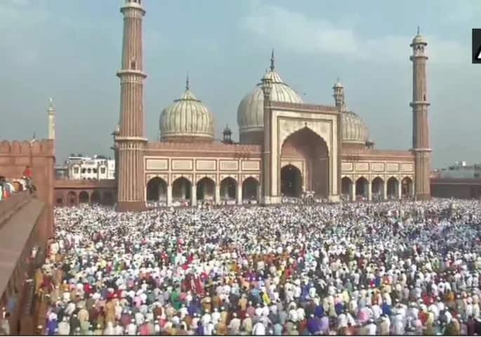 ਦੇਸ਼ ਭਰ ਵਿੱਚ ਅੱਜ ਈਦ ਦਾ ਤਿਉਹਾਰ ਮਨਾਇਆ ਜਾ ਰਿਹਾ ਹੈ। ਲੋਕਾਂ ਨੇ ਸਭ ਤੋਂ ਪਹਿਲਾਂ ਆਪਣੀਆਂ ਨਜ਼ਦੀਕੀ ਮਸਜਿਦਾਂ 'ਤੇ ਜਾ ਕੇ ਈਦ ਦੀ ਨਮਾਜ਼ ਅਦਾ ਕੀਤੀ। ਇਸ ਤੋਂ ਬਾਅਦ ਇੱਕ-ਦੂਜੇ ਨੂੰ ਮੁਬਾਰਕਬਾਦ ਦਿੱਤੀ। ਇਹ ਤਸਵੀਰ ਦਿੱਲੀ ਦੀ ਮਸ਼ਹੂਰ ਜਾਮਾ ਮਸਜਿਦ ਦੀ ਹੈ।