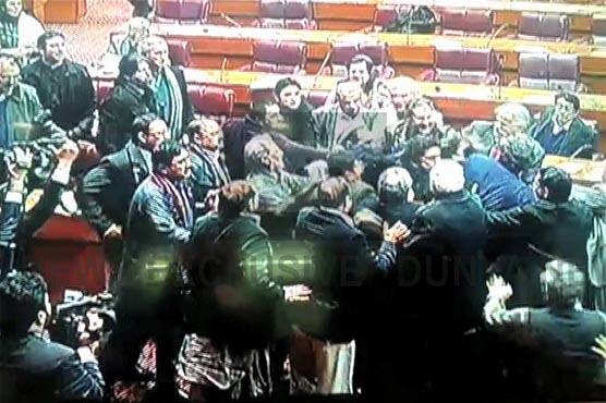 ਸੰਸਦ 'ਚ ਹੰਗਾਮਾ, ਸ਼ਰੀਫ਼ ਦੇ ਸਾਂਸਦਾਂ ਵੱਲੋਂ ਵਿਰੋਧੀ ਧਿਰ ਦਾ ਕੁਟਾਪਾ