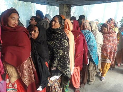 ਵੋਟ ਪਾਉਣ ਲਈ ਆਪਣੀ ਵਾਰੀ ਦਾ ਇੰਤਜ਼ਾਰ ਕਰਦੀਆਂ ਹੋਈਆਂ ਮਹਿਲਾਵਾਂ।