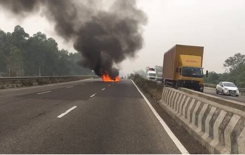 ਚੱਲਦੀ ਮਰਸਿਡੀਜ਼ ਕਾਰ ਨੂੰ ਲੱਗੀ ਅੱਗ, 3 ਜਣਿਆਂ ਮਸਾਂ ਬਚਾਈ ਜਾਨ, ਵੇਖੋ ਤਸਵੀਰਾਂ