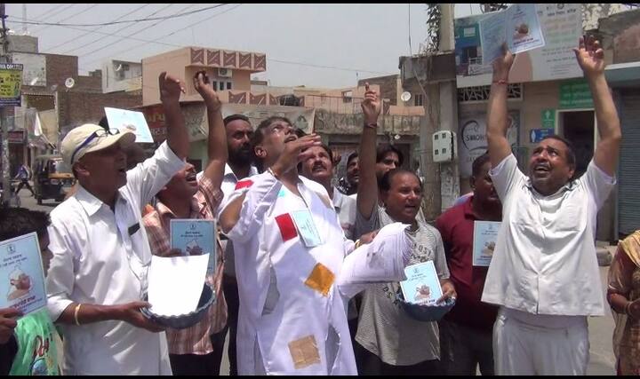 ਬਠਿੰਡਾ ਵਿੱਚ ਲੋਕਾਂ ਨੇ ਬੰਦ ਹੋਏ ਰਾਸ਼ਨ ਕਾਰਡ ਫੜ ਕੇ, ਹੱਥਾਂ ਵਿੱਚ ਖਾਲੀ ਬਾਟੇ ਲੈ ਤੇ ਫਟੇ-ਪੁਰਾਣੇ ਲੀਰਾਂ ਵਾਲੇ ਕੱਪੜੇ ਪਾ ਕੇ ਪੰਜਾਬ ਸਰਕਾਰ ਖਿਲਾਫ ਪ੍ਰਦਰਸ਼ਨ ਕੀਤਾ।