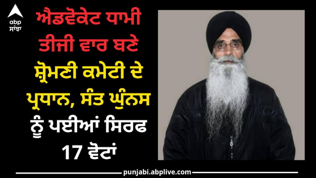 Amritsar News: ਐਡਵੋਕੇਟ ਹਰਜਿੰਦਰ ਸਿੰਘ ਧਾਮੀ ਤੀਜੀ ਵਾਰ ਸ਼੍ਰੋਮਣੀ ਗੁਰਦੁਆਰਾ ਪ੍ਰਬੰਧਕ ਕਮੇਟੀ ਅੰਮ੍ਰਿਤਸਰ ਦੇ ਪ੍ਰਧਾਨ ਬਣ ਗਏ ਹਨ। ਜਨਰਲ ਇਜਲਾਸ ਵਿੱਚ 137 ਮੈਂਬਰਾਂ ਨੇ ਆਪਣੀ ਵੋਟ ਦਾ ਇਸਤੇਮਾਲ ਕੀਤਾ ਜਿਸ ਵਿੱਚੋਂ ਐਡਵੋਕੇਟ ਧਾਮੀ ਨੂੰ 118 ਵੋਟਾਂ ਪਈਆਂ। ਜਦੋਂਕਿ ਉਨ੍ਹਾਂ ਦੇ ਵਿਰੋਧੀ ਸੰਤ ਬਲਬੀਰ ਸਿੰਘ ਘੁੰਨਸ ਨੂੰ ਸਿਰਫ 17 ਵੋਟਾਂ ਪਈਆਂ। ਇਸ ਦੌਰਾਨ ਦੋ ਵੋਟਾਂ ਕੈਂਸਲ ਹੋ ਗਈਆਂ।