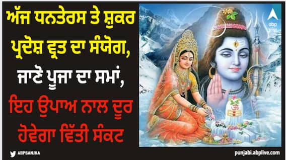 Shukra Pradosh Vrat 2023: ਕਾਰਤਿਕ ਮਹੀਨੇ ਦਾ ਪ੍ਰਦੋਸ਼ ਵ੍ਰਤ ਬਹੁਤ ਖਾਸ ਮੰਨਿਆ ਜਾ ਰਿਹਾ ਹੈ, ਕਿਉਂਕਿ ਅੱਜ 10 ਨਵੰਬਰ 2023 ਨੂੰ ਧਨਤੇਰਸ ਤੇ ਸ਼ੁਕਰ ਪ੍ਰਦੋਸ਼ ਵ੍ਰਤ ਦਾ ਸੰਯੋਗ ਬਣ ਰਿਹਾ ਹੈ। ਇਸ ਵਰਤ ਨੂੰ ਰੱਖਣ ਵਾਲਿਆਂ ਨੂੰ ਦੇਵੀ ਲਕਸ਼ਮੀ ਦਾ ਵਿਸ਼ੇਸ਼ ਆਸ਼ੀਰਵਾਦ ਮਿਲੇਗਾ।
