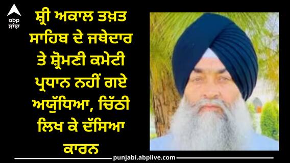 Amritsar News: ਸ਼੍ਰੀ ਅਕਾਲ ਤਖ਼ਤ ਸਾਹਿਬ ਦੇ ਜਥੇਦਾਰ ਜਥੇਦਾਰ ਗਿਆਨੀ ਰਘਬੀਰ ਸਿੰਘ ਤੇ ਸ਼੍ਰੋਮਣੀ ਕਮੇਟੀ ਦੇ ਪ੍ਰਧਾਨ ਐਡਵੋਕੇਟ ਹਰਜਿੰਦਰ ਸਿੰਘ ਧਾਮੀ ਅੱਜ ਰਾਮ ਮੰਦਿਰ ਵਿੱਚ ਰਾਮ ਲੱਲਾ ਦੀ ਪ੍ਰਾਣ ਪ੍ਰਤਿਸ਼ਠਾ ਦੇ ਸਮਾਗਮ ਮੌਕੇ ਅਯੁੱਧਿਆ ਨਹੀਂ ਪਹੁੰਚੇ। ਉਨ੍ਹਾਂ ਨੇ ਚਿੱਠੀ ਲਿਖ ਕੇ ਸੱਦਾ ਪੱਤਰ ਭੇਜਣ ਲਈ ਧੰਨਵਾਦ ਕੀਤਾ ਹੈ। ਇਸ ਦੇ ਨਾਲ ਹੀ ਨਾ ਪਹੁੰਚਣ ਦਾ ਕਾਰਨ ਵੀ ਲਿਖਿਆ ਹੈ।