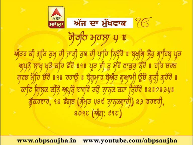 23-02-2018 ਦਾ ਮੁੱਖਵਾਕ