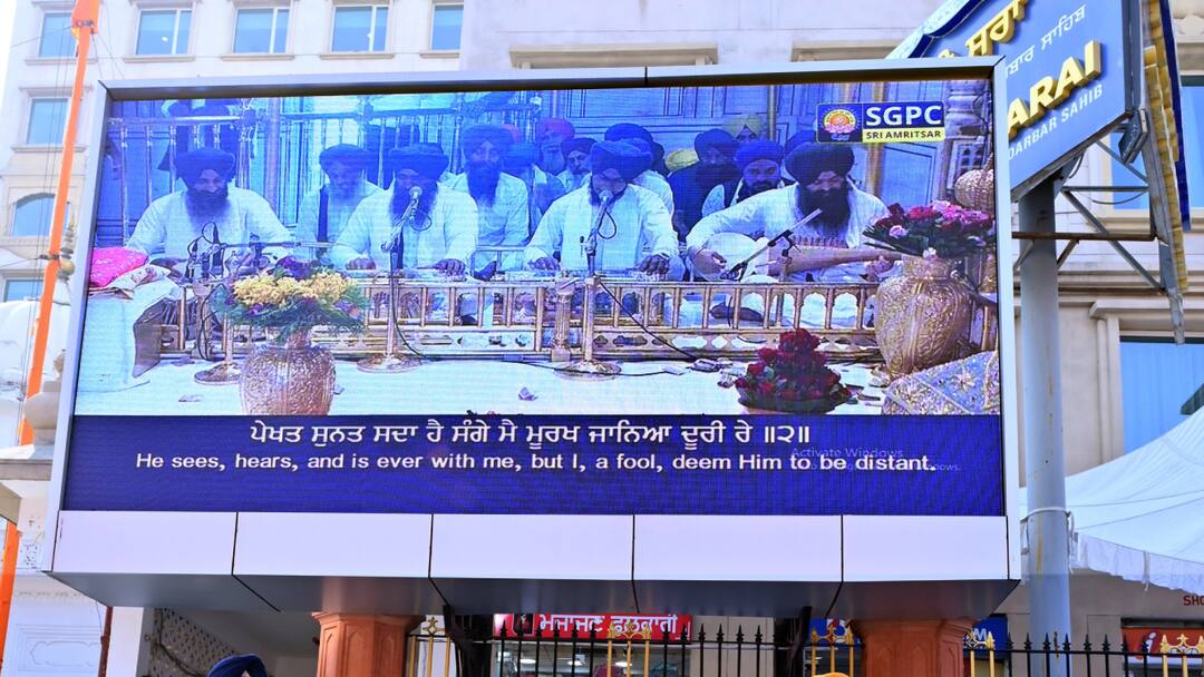 ਅੰਮ੍ਰਿਤਸਰ - ਸ਼੍ਰੋਮਣੀ ਗੁਰਦੁਆਰਾ ਪ੍ਰਬੰਧਕ ਕਮੇਟੀ ਨੇ ਸ੍ਰੀ ਦਰਬਾਰ ਸਾਹਿਬ ਨੂੰ ਆਉਂਦੇ ਮਾਰਗ ’ਤੇ ਗੁਰਦੁਆਰਾ ਸਾਹਿਬ ਸਾਰਾਗੜ੍ਹੀ ਨਜ਼ਦੀਕ ਇਕ ਵੱਡ-ਅਕਾਰੀ ਸਕਰੀਨ ਸਥਾਪਤ ਕੀਤੀ ਹੈ, ਜਿਸ ’ਤੇ ਸੱਚਖੰਡ ਸ੍ਰੀ ਹਰਿਮੰਦਰ ਸਾਹਿਬ ਸ੍ਰੀ ਦਰਬਾਰ ਸਾਹਿਬ ਤੋਂ ਗੁਰਬਾਣੀ ਕੀਰਤਨ ਚਲਾਇਆ ਜਾਵੇਗਾ। ਇਸ ਸਕਰੀਨ ਦੀ ਸੇਵਾ ਦੁਬਈ ਵਾਸੀ ਸ. ਜਸਪ੍ਰੀਤ ਸਿੰਘ ਓਬਰਾਏ ਦੇ ਪਰਿਵਾਰ ਵੱਲੋਂ ਕਰਵਾਈ ਗਈ ਹੈ।