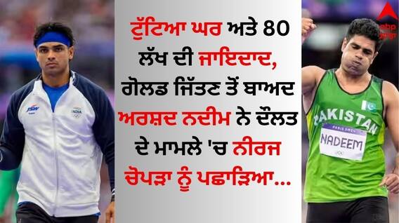Arshad Nadeem And Neeraj Chopra Net Worth: ਪਾਕਿਸਤਾਨ ਦੇ ਅਰਸ਼ਦ ਨਦੀਮ 2024 ਪੈਰਿਸ ਓਲੰਪਿਕ 'ਚ ਸੋਨ ਤਮਗਾ ਜਿੱਤਣ ਤੋਂ ਬਾਅਦ ਲਗਾਤਾਰ ਸੁਰਖੀਆਂ 'ਚ ਹਨ। ਨਦੀਮ ਨੇ ਓਲੰਪਿਕ ਵਿੱਚ 92.97 ਮੀਟਰ ਜੈਵਲਿਨ ਸੁੱਟ ਕੇ ਸੋਨ ਤਗ਼ਮਾ ਜਿੱਤਿਆ ਸੀ। ਜਦੋਂ ਕਿ ਭਾਰਤ ਦੇ ਨੀਰਜ ਚੋਪੜਾ ਨੇ ਚਾਂਦੀ ਦਾ ਤਗਮਾ ਜਿੱਤਿਆ। ਗੋਲਡ ਜਿੱਤਣ ਤੋਂ ਬਾਅਦ ਅਰਸ਼ਦ ਦੀ ਨੈੱਟਵਰਥ ਦੀ ਵੀ ਕਾਫੀ ਚਰਚਾ ਹੋ ਰਹੀ ਹੈ। ਦਾਅਵਾ ਕੀਤਾ ਜਾ ਰਿਹਾ ਹੈ ਕਿ ਗੋਲਡ ਜਿੱਤਣ ਤੋਂ ਪਹਿਲਾਂ ਅਰਸ਼ਦ ਦੀ ਆਰਥਿਕ ਹਾਲਤ ਬਹੁਤ ਖਰਾਬ ਸੀ ਪਰ ਹੁਣ ਉਸ ਦੀ ਦੌਲਤ ਨੀਰਜ ਚੋਪੜਾ ਤੋਂ ਵੀ ਵੱਧ ਹੋ ਗਈ ਹੈ।