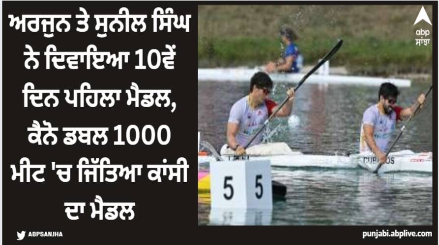 Asian Games 2023: ਏਸ਼ੀਅਨ ਖੇਡਾਂ ਦੇ 10ਵੇਂ ਦਿਨ ਅਰਜੁਨ ਅਤੇ ਸੁਨੀਲ ਸਿੰਘ ਨੇ ਭਾਰਤ ਨੂੰ ਪਹਿਲਾ ਤਗਮਾ ਦਿਵਾਇਆ। ਇਸ ਭਾਰਤੀ ਜੋੜੀ ਨੇ ਕੈਨੋ ਡਬਲ 1000 ਮੀਟਰ ਵਿੱਚ ਕਾਂਸੀ ਦਾ ਤਗ਼ਮਾ ਜਿੱਤਿਆ। ਇਸ ਨਾਲ ਭਾਰਤ ਦੇ ਹੁਣ 2023 ਦੀਆਂ ਏਸ਼ਿਆਈ ਖੇਡਾਂ ਵਿੱਚ 61 ਤਗ਼ਮੇ ਹੋ ਗਏ ਹਨ।