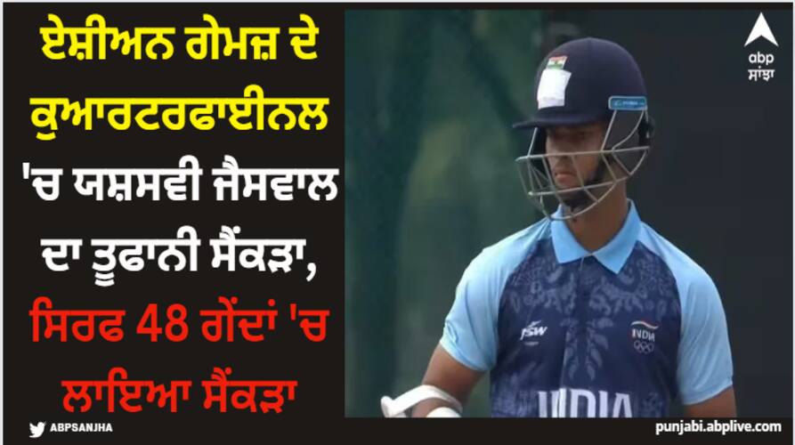 Yashasvi Jaiswal: ਖੱਬੇ ਹੱਥ ਦੇ ਭਾਰਤੀ ਬੱਲੇਬਾਜ਼ ਯਸ਼ਸਵੀ ਜੈਸਵਾਲ ਨੇ ਏਸ਼ੀਆਈ ਖੇਡਾਂ 2023 ਵਿੱਚ ਭਾਰਤ ਅਤੇ ਨੇਪਾਲ ਦੀਆਂ ਕ੍ਰਿਕਟ ਟੀਮਾਂ ਵਿਚਾਲੇ ਖੇਡੇ ਜਾ ਰਹੇ ਕੁਆਰਟਰ ਫਾਈਨਲ ਮੈਚ ਵਿੱਚ ਸੈਂਕੜਾ ਜੜਿਆ ਹੈ। ਜੈਸਵਾਲ ਨੇ 48 ਗੇਂਦਾਂ ਵਿੱਚ ਆਪਣਾ ਸੈਂਕੜਾ (100) ਪੂਰਾ ਕੀਤਾ। ਉਸ ਦੇ ਸੈਂਕੜੇ ਵਿੱਚ 8 ਚੌਕੇ ਅਤੇ 7 ਛੱਕੇ ਸ਼ਾਮਲ ਸਨ। ਟੀ-20 ਇੰਟਰਨੈਸ਼ਨਲ 'ਚ ਜੈਸਵਾਲ ਦਾ ਇਹ ਪਹਿਲਾ ਸੈਂਕੜਾ ਹੈ। ਭਾਰਤੀ ਬੱਲੇਬਾਜ਼ਾਂ ਨੇ ਮੈਚ ਦੀ ਸ਼ੁਰੂਆਤ ਤੋਂ ਹੀ ਹਮਲਾਵਰ ਅੰਦਾਜ਼ ਅਪਣਾਇਆ। ਉਹ 49 ਗੇਂਦਾਂ ਵਿੱਚ 100 ਦੌੜਾਂ ਬਣਾ ਕੇ ਪੈਵੇਲੀਅਨ ਪਰਤ ਗਿਆ।