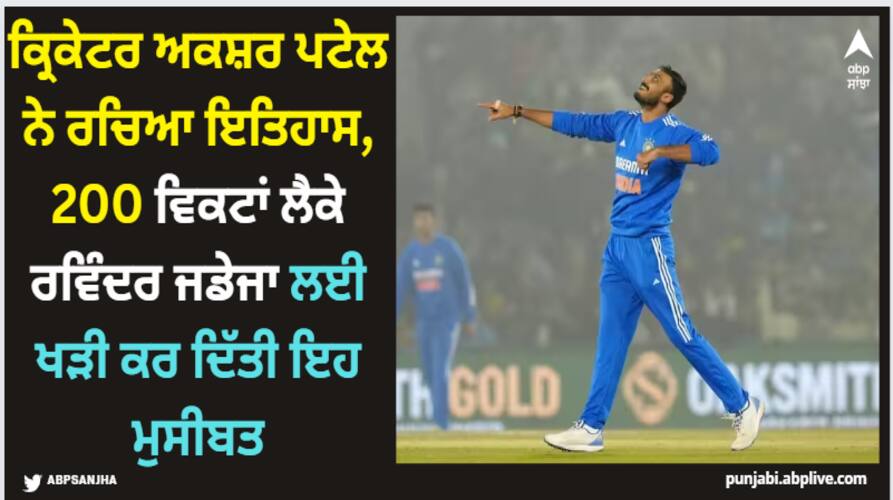 Axar Patel Creates History: ਇਸ ਸਾਲ ਹੋਣ ਵਾਲੇ ਟੀ-20 ਵਿਸ਼ਵ ਕੱਪ ਤੋਂ ਪਹਿਲਾਂ ਟੀਮ ਇੰਡੀਆ ਲਈ ਮੁਸ਼ਕਿਲਾਂ ਵਧਦੀਆਂ ਜਾ ਰਹੀਆਂ ਹਨ। ਹਾਲਾਂਕਿ ਇਹ ਮੁਸ਼ਕਲ ਟੀਮ ਇੰਡੀਆ ਲਈ ਚੰਗੀ ਹੈ। ਦਰਅਸਲ ਅਫਗਾਨਿਸਤਾਨ ਖਿਲਾਫ ਖੇਡੀ ਜਾ ਰਹੀ ਟੀ-20 ਸੀਰੀਜ਼ 'ਚ ਅਕਸ਼ਰ ਪਟੇਲ ਸ਼ਾਨਦਾਰ ਗੇਂਦਬਾਜ਼ੀ ਕਰ ਰਹੇ ਹਨ। ਦੂਜੇ ਮੈਚ ਵਿੱਚ ਅਕਸ਼ਰ ਪਟੇਲ ਨੂੰ ਪਲੇਅਰ ਆਫ ਦ ਮੈਚ ਦਾ ਐਵਾਰਡ ਵੀ ਦਿੱਤਾ ਗਿਆ। ਅਕਸ਼ਰ ਪਟੇਲ ਟੀ-20 ਇੰਟਰਨੈਸ਼ਨਲ 'ਚ ਟੀਮ ਇੰਡੀਆ ਲਈ ਰਵਿੰਦਰ ਜਡੇਜਾ ਦੇ ਬਦਲ ਵਜੋਂ ਉਭਰਿਆ ਹੈ।