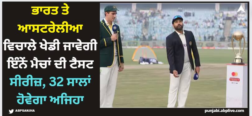 ਜ਼ਿਕਰਯੋਗ ਹੈ ਕਿ ਟੈਸਟ ਕ੍ਰਿਕਟ 'ਚ 32 ਸਾਲ ਬਾਅਦ ਅਜਿਹਾ ਹੋਵੇਗਾ ਜਦੋਂ ਦੋਵਾਂ ਦੇਸ਼ਾਂ ਵਿਚਾਲੇ ਪੰਜ ਮੈਚਾਂ ਦੀ ਟੈਸਟ ਸੀਰੀਜ਼ ਖੇਡੀ ਜਾਵੇਗੀ। ਇਸ ਤੋਂ ਪਹਿਲਾਂ 1991-92 'ਚ ਭਾਰਤ ਅਤੇ ਆਸਟ੍ਰੇਲੀਆ ਵਿਚਾਲੇ ਪੰਜ ਮੈਚਾਂ ਦੀ ਟੈਸਟ ਸੀਰੀਜ਼ ਖੇਡੀ ਗਈ ਸੀ। ਬਾਰਡਰ ਗਾਵਸਕਰ ਟਰਾਫੀ ਲਈ ਖੇਡੀ ਜਾਣ ਵਾਲੀ ਇਹ ਸੀਰੀਜ਼ ਆਸਟ੍ਰੇਲੀਆ ਦੇ 2024-25 ਦੇ ਸ਼ਡਿਊਲ ਦੀ ਖਾਸ ਗੱਲ ਹੋਵੇਗੀ। ਇਸ ਦਾ ਪ੍ਰੋਗਰਾਮ ਆਉਣ ਵਾਲੇ ਦਿਨਾਂ ਵਿੱਚ ਰਿਲੀਜ਼ ਕੀਤਾ ਜਾਵੇਗਾ।