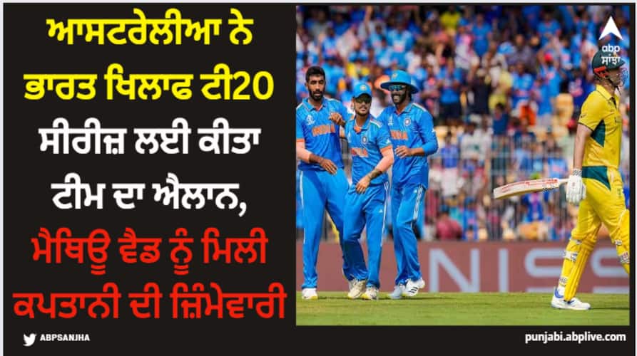 ਮੈਥਿਊ ਵੇਡ ਨੂੰ ਕਪਤਾਨੀ ਮਿਲੀ, ਸਮਿਥ ਤੇ ਵਾਰਨਰ ਦੀ ਵਾਪਸੀਵਿਕਟਕੀਪਰ ਬੱਲੇਬਾਜ਼ ਮੈਥਿਊ ਵੇਡ ਭਾਰਤ ਦੇ ਖਿਲਾਫ ਪੰਜ ਮੈਚਾਂ ਦੀ ਟੀ-20 ਸੀਰੀਜ਼ 'ਚ ਕੰਗਾਰੂ ਟੀਮ ਦੇ ਕਪਤਾਨ ਹੋਣਗੇ। ਇਹ ਸੀਰੀਜ਼ ਡੇਵਿਡ ਵਾਰਨਰ ਅਤੇ ਸਟੀਵ ਸਮਿਥ ਦੀ ਟੀ-20 ਟੀਮ 'ਚ ਵਾਪਸੀ ਦੀ ਨਿਸ਼ਾਨਦੇਹੀ ਕਰਦੀ ਹੈ। ਇਸ ਤੋਂ ਇਲਾਵਾ ਟ੍ਰੈਵਿਸ ਹੈੱਡ, ਮਾਰਕਸ ਸਟੋਇਨਿਸ, ਗਲੇਨ ਮੈਕਸਵੈੱਲ ਅਤੇ ਟਿਮ ਡੇਵਿਡ ਵੀ ਇਸ ਸੀਰੀਜ਼ 'ਚ ਆਸਟ੍ਰੇਲੀਆਈ ਟੀਮ ਦਾ ਹਿੱਸਾ ਹੋਣਗੇ।
