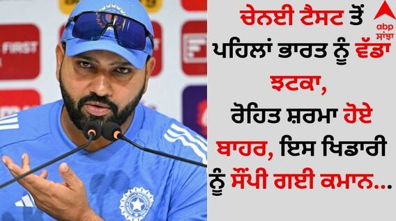 Sports Breaking: ਭਾਰਤ ਬਨਾਮ ਬੰਗਲਾਦੇਸ਼ ਟੈਸਟ ਸੀਰੀਜ਼ (IND vs BAN) ਸ਼ੁਰੂ ਹੋਣ ਵਿੱਚ ਇੱਕ ਦਿਨ ਤੋਂ ਵੀ ਘੱਟ ਸਮਾਂ ਬਾਕੀ ਹੈ। ਚੇਨਈ ਦਾ ਐਮਏ ਚਿਦੰਬਰਮ ਕ੍ਰਿਕਟ ਸਟੇਡੀਅਮ ਵੀਰਵਾਰ ਨੂੰ ਪਹਿਲੇ ਟੈਸਟ ਮੈਚ ਦੀ ਮੇਜ਼ਬਾਨੀ ਕਰੇਗਾ। ਭਾਰਤੀ ਖਿਡਾਰੀ ਪਿਛਲੇ ਇੱਕ ਹਫ਼ਤੇ ਤੋਂ ਇਸਦੀ ਤਿਆਰੀ ਵਿੱਚ ਰੁੱਝੇ ਹੋਏ ਹਨ। ਕਪਤਾਨ ਰੋਹਿਤ ਸ਼ਰਮਾ ਸਮੇਤ ਪੂਰੀ ਟੀਮ ਨੈੱਟ 'ਤੇ ਜ਼ੋਰਦਾਰ ਅਭਿਆਸ ਕਰਦੀ ਨਜ਼ਰ ਆਈ। IND vs BAN ਟੈਸਟ ਸੀਰੀਜ਼ ਸ਼ੁਰੂ ਹੋਣ ਤੋਂ ਪਹਿਲਾਂ ਕ੍ਰਿਕਟ ਪ੍ਰਸ਼ੰਸਕਾਂ ਲਈ ਬੁਰੀ ਖਬਰ ਆਈ ਹੈ। ਕਪਤਾਨ ਨੂੰ ਖਰਾਬ ਸਿਹਤ ਕਾਰਨ ਪਹਿਲੇ ਮੈਚ ਤੋਂ ਖੁੰਝਣਾ ਪਿਆ।