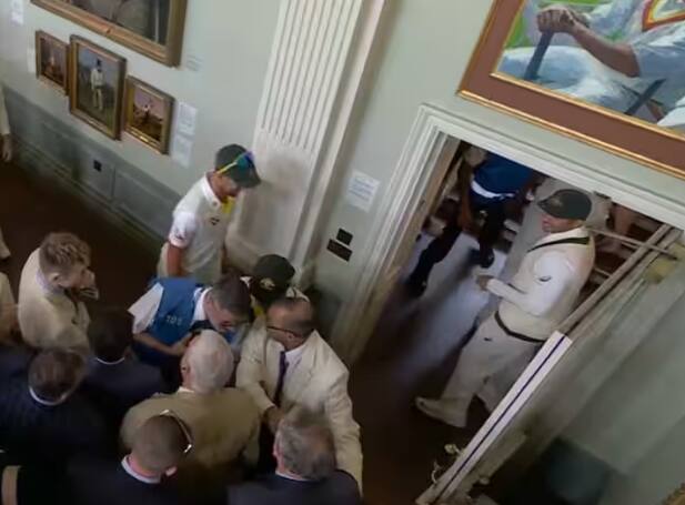 Ashes 2023, England vs Australia: ਆਸਟ੍ਰੇਲੀਆਈ ਟੀਮ ਦੇ ਓਪਨਿੰਗ ਬੱਲੇਬਾਜ਼ ਉਸਮਾਨ ਖਵਾਜਾ ਅਤੇ ਡੇਵਿਡ ਵਾਰਨਰ 5ਵੇਂ ਦਿਨ ਲੰਚ ਦੇ ਸਮੇਂ ਲਾਰਡਸ ਮੈਦਾਨ ਦੇ ਲੋਂਗ ਰੂਮ ਤੋਂ ਬਾਹਰ ਨਿਕਲਦਿਆਂ MCC ਦੇ ਇੱਕ ਮੈਂਬਰ ਨਾਲ ਭਿੜ ਗਏ। ਲਾਰਡਸ ਟੈਸਟ ਮੈਚ 'ਚ 371 ਦੌੜਾਂ ਦੇ ਟੀਚੇ ਦਾ ਪਿੱਛਾ ਕਰਨ ਉਤਰੀ ਇੰਗਲੈਂਡ ਦੀ ਟੀਮ ਨੇ ਲੰਚ ਤੱਕ 6 ਵਿਕਟਾਂ ਦੇ ਨੁਕਸਾਨ 'ਤੇ 243 ਦੌੜਾਂ ਬਣਾ ਲਈਆਂ ਸਨ।