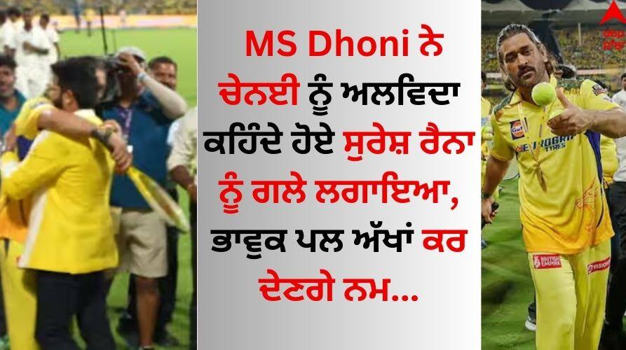 MS Dhoni And Suresh Raina: ਆਈਪੀਐੱਲ ਮੁਕਾਬਲਿਆਂ ਦੇ ਨਾਲ-ਨਾਲ ਮਹਿੰਦਰ ਸਿੰਘ ਧੋਨੀ ਲਗਾਤਾਰ ਸੁਰਖੀਆਂ ਦਾ ਵਿਸ਼ਾ ਬਣੇ ਹੋਏ ਹਨ। ਦੱਸ ਦੇਈਏ ਕਿ ਖੇਡ ਦੇ ਮੈਦਾਨ ਵਿੱਚ ਧੋਨੀ ਨੂੰ ਵੇਖ ਪ੍ਰਸ਼ੰਸਕ ਬੇਹੱਦ ਉਤਸ਼ਾਹਿਤ ਹੁੰਦੇ ਹਨ। ਜਦੋਂ-ਜਦੋਂ ਧੋਨੀ ਮੈਦਾਨ ਵਿੱਚ ਆਏ ਉਨ੍ਹਾਂ ਕ੍ਰਿਕਟ ਪ੍ਰੇਮੀਆਂ ਦੇ ਦਿਲਾਂ ਉੱਪਰ ਵੱਖਰੀ ਛਾਪ ਛੱਡੀ। ਪਰ ਇਸ ਵਿਚਾਲੇ ਐਮਐਸ ਧੋਨੀ ਪ੍ਰਸ਼ੰਸਕਾਂ ਸਣੇ ਖਿਡਾਰੀਆਂ ਦੀਆਂ ਅੱਖਾਂ ਨਮ ਕਰ ਗਏ। ਦਰਅਸਲ, ਚੇਨਈ ਸੁਪਰ ਕਿੰਗਜ਼ ਨੇ IPL 2024 ਦਾ ਆਖਰੀ ਘਰੇਲੂ ਲੀਗ ਮੈਚ ਰਾਜਸਥਾਨ ਰਾਇਲਜ਼ ਦੇ ਖਿਲਾਫ ਖੇਡਿਆ। ਇਸ ਦੌਰਾਨ ਉਨ੍ਹਾਂ ਐੱਮ.ਏ.ਚਿਦੰਬਰਮ ਸਟੇਡੀਅਮ, ਚੇਨਈ 'ਚ ਖੇਡੇ ਗਏ ਮੈਚ 'ਚ ਸੁਪਰ ਕਿੰਗਜ਼ ਨੇ 5 ਵਿਕਟਾਂ ਨਾਲ ਜਿੱਤ ਦਰਜ ਕੀਤੀ।