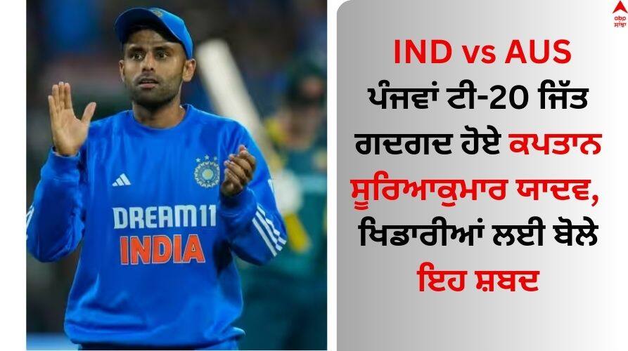 Suryakumar Yadav's Reaction: ਭਾਰਤੀ ਟੀਮ ਨੇ ਆਸਟਰੇਲੀਆ ਨੂੰ ਪੰਜਵੇਂ ਟੀ-20 ਵਿੱਚ 6 ਦੌੜਾਂ ਨਾਲ ਹਰਾਇਆ। ਬੈਂਗਲੁਰੂ ਦੇ ਐੱਮ ਚਿੰਨਾਸਵਾਮੀ ਸਟੇਡੀਅਮ 'ਚ ਖੇਡਿਆ ਗਿਆ ਮੈਚ ਆਖਰੀ ਓਵਰ ਤੱਕ ਚੱਲਦਾ ਰਿਹਾ ਅਤੇ ਖੇਡ ਇੱਧਰ-ਉੱਧਰ ਹੁੰਦੀ ਰਹੀ ਪਰ ਅੰਤ 'ਚ ਭਾਰਤ ਦੀ ਜਿੱਤ ਹੋਈ। ਕਪਤਾਨ ਸੂਰਿਆ ਕੁਮਾਰ ਯਾਦਵ ਟੀਮ ਇੰਡੀਆ ਦੀ ਜਿੱਤ ਤੋਂ ਕਾਫੀ ਖੁਸ਼ ਨਜ਼ਰ ਆਏ। ਸੂਰਿਆ ਨੇ ਭਾਰਤੀ ਖਿਡਾਰੀਆਂ ਦੀ ਜ਼ੋਰਦਾਰ ਤਾਰੀਫ਼ ਕੀਤੀ। ਸੂਰੀਆ ਨੇ ਦੱਸਿਆ ਕਿ ਖਿਡਾਰੀਆਂ ਨੇ ਉਸ ਤਰ੍ਹਾਂ ਹੀ ਕੀਤਾ ਜਿਵੇਂ ਉਨ੍ਹਾਂ ਨੂੰ ਕਿਹਾ ਗਿਆ ਸੀ।