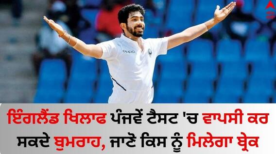 Jasprit Bumrah IND vs ENG: ਜਸਪ੍ਰੀਤ ਬੁਮਰਾਹ ਨੂੰ ਟੀਮ ਇੰਡੀਆ ਨੇ ਰਾਂਚੀ ਟੈਸਟ ਤੋਂ ਬ੍ਰੇਕ ਦਿੱਤਾ ਸੀ। ਬੁਮਰਾਹ ਨੇ ਇੰਗਲੈਂਡ ਖਿਲਾਫ ਪਹਿਲੇ ਤਿੰਨ ਟੈਸਟ ਮੈਚ ਖੇਡੇ ਸਨ। ਪਰ ਹੁਣ ਉਹ ਦੁਬਾਰਾ ਪਰਤ ਸਕਦਾ ਹੈ। ਭਾਰਤ ਅਤੇ ਇੰਗਲੈਂਡ ਵਿਚਾਲੇ ਟੈਸਟ ਸੀਰੀਜ਼ ਦਾ ਆਖਰੀ ਮੈਚ 7 ਮਾਰਚ ਤੋਂ ਧਰਮਸ਼ਾਲਾ 'ਚ ਖੇਡਿਆ ਜਾਵੇਗਾ। ਬੁਮਰਾਹ ਇਸ ਮੈਚ 'ਚ ਖੇਡਦੇ ਨਜ਼ਰ ਆ ਸਕਦੇ ਹਨ। ਟੀਮ ਮੈਨੇਜਮੈਂਟ ਖਿਡਾਰੀਆਂ ਦੇ ਕੰਮ ਦੇ ਲੋਡ ਵੱਲ ਵਿਸ਼ੇਸ਼ ਧਿਆਨ ਦੇ ਰਹੀ ਹੈ। ਇਸ ਕਾਰਨ ਲਗਾਤਾਰ ਖੇਡ ਰਹੇ ਖਿਡਾਰੀਆਂ ਨੂੰ ਵੀ ਬਰੇਕ ਦਿੱਤੀ ਜਾ ਸਕਦੀ ਹੈ।