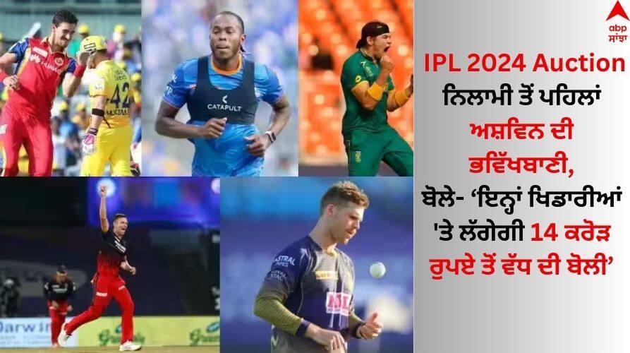 Ravichandran Ashwin: ਭਾਰਤ ਦੇ ਮਹਾਨ ਸਪਿਨ ਗੇਂਦਬਾਜ਼ਾਂ ਵਿੱਚੋਂ ਇੱਕ ਰਵੀਚੰਦਰਨ ਅਸ਼ਵਿਨ ਨੇ IPL 2024 ਦੀ ਨਿਲਾਮੀ ਤੋਂ ਪਹਿਲਾਂ ਕੁਝ ਵੱਡੀਆਂ ਗੱਲਾਂ ਕਹੀਆਂ ਹਨ। ਉਨ੍ਹਾਂ ਨੇ ਅੰਦਾਜ਼ਾ ਲਗਾਉਂਦੇ ਹੋਏ ਉਨ੍ਹਾਂ ਖਿਡਾਰੀਆਂ ਬਾਰੇ ਦੱਸਿਆ ਹੈ, ਜਿਨ੍ਹਾਂ ਪਿੱਛੇ ਇਸ ਬਾਰ ਕਈ ਟੀਮਾਂ ਬੋਲੀ ਲਗਾ ਸਕਦੀਆਂ ਹਨ ਅਤੇ ਉਨ੍ਹਾਂ ਦੇ ਨਾਂ 'ਤੇ 14 ਕਰੋੜ ਰੁਪਏ ਤੋਂ ਵੱਧ ਖਰਚ ਕਰ ਸਕਦੀਆਂ ਹਨ।
