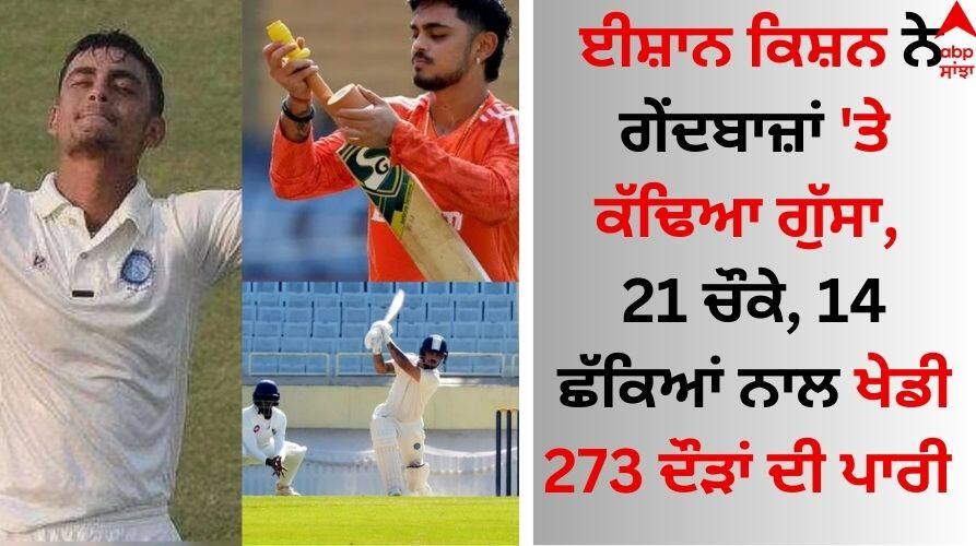 Ishan Kishan: ਭਾਰਤੀ ਟੀਮ ਦੇ ਨੌਜਵਾਨ ਵਿਕਟਕੀਪਰ ਬੱਲੇਬਾਜ਼ ਈਸ਼ਾਨ ਕਿਸ਼ਨ ਫਿਲਹਾਲ ਟੀਮ ਇੰਡੀਆ ਤੋਂ ਬਾਹਰ ਹਨ। ਕਿਉਂਕਿ, ਈਸ਼ਾਨ ਕਿਸ਼ਨ ਨੂੰ ਜ਼ਿੰਬਾਬਵੇ ਦੇ ਖਿਲਾਫ ਟੀ-20 ਸੀਰੀਜ਼ 'ਚ ਮੌਕਾ ਨਹੀਂ ਮਿਲਿਆ। ਉਥੇ ਹੀ ਹੁਣ ਈਸ਼ਾਨ ਨੂੰ ਸ਼੍ਰੀਲੰਕਾ ਖਿਲਾਫ ਸੀਰੀਜ਼ 'ਚ ਵੀ ਮੌਕਾ ਨਹੀਂ ਮਿਲਿਆ ਹੈ। ਜਿਸ ਕਾਰਨ ਈਸ਼ਾਨ ਕਿਸ਼ਨ ਦਾ ਕਰੀਅਰ ਖਤਮ ਹੁੰਦਾ ਨਜ਼ਰ ਆ ਰਿਹਾ ਹੈ। ਕਿਉਂਕਿ ਈਸ਼ਾਨ ਕਿਸ਼ਨ ਨਵੰਬਰ 2023 ਤੋਂ ਟੀਮ ਇੰਡੀਆ ਤੋਂ ਬਾਹਰ ਹਨ। ਹਾਲਾਂਕਿ ਈਸ਼ਾਨ ਨੇ ਆਪਣੇ ਕ੍ਰਿਕਟ ਕਰੀਅਰ 'ਚ ਕਈ ਸ਼ਾਨਦਾਰ ਪਾਰੀਆਂ ਖੇਡੀਆਂ ਹਨ। ਪਰ ਉਸ ਵੱਲੋਂ ਖੇਡੀ ਗਈ ਇੱਕ ਪਾਰੀ ਇਸ ਸਮੇਂ ਸੁਰਖੀਆਂ ਵਿੱਚ ਹੈ। ਜਿਸ 'ਚ ਉਸ ਨੇ ਹਮਲਾਵਰ ਬੱਲੇਬਾਜ਼ੀ ਕਰਦੇ ਹੋਏ 273 ਦੌੜਾਂ ਬਣਾਈਆਂ।