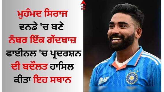 Mohammed Siraj Becomes The Number 1 ODI Ranking Bowler: ਏਸ਼ੀਆ ਕੱਪ 2023 ਦੇ ਫਾਈਨਲ ਮੈਚ 'ਚ ਭਾਰਤੀ ਟੀਮ ਦੀ ਜਿੱਤ 'ਚ ਅਹਿਮ ਭੂਮਿਕਾ ਨਿਭਾਉਣ ਵਾਲੇ ਤੇਜ਼ ਗੇਂਦਬਾਜ਼ ਮੁਹੰਮਦ ਸਿਰਾਜ ਨੇ ਆਈਸੀਸੀ ਵਨਡੇ ਗੇਂਦਬਾਜ਼ਾਂ ਦੀ ਰੈਂਕਿੰਗ 'ਚ 8 ਸਥਾਨਾਂ ਦੀ ਛਲਾਂਗ ਮਾਰ ਕੇ ਪਹਿਲਾ ਸਥਾਨ ਹਾਸਲ ਕੀਤਾ ਹੈ। ਸ੍ਰੀਲੰਕਾ ਖ਼ਿਲਾਫ਼ ਖ਼ਿਤਾਬੀ ਮੈਚ ਵਿੱਚ ਸਿਰਾਜ ਦੀ ਗੇਂਦਬਾਜ਼ੀ ਕਾਰਨ ਟੀਮ ਨੂੰ ਸਿਰਫ਼ 51 ਦੌੜਾਂ ਦਾ ਟੀਚਾ ਮਿਲਿਆ ਸੀ। ਇਸ ਮੈਚ 'ਚ ਸਿਰਾਜ ਨੇ 7 ਓਵਰਾਂ 'ਚ ਸਿਰਫ 21 ਦੌੜਾਂ ਦੇ ਕੇ 6 ਵਿਕਟਾਂ ਹਾਸਿਲ ਕੀਤੀਆਂ ਸਨ ਸਨ। ਮੁਹੰਮਦ ਸਿਰਾਜ ਏਸ਼ੀਆ ਕੱਪ ਸ਼ੁਰੂ ਹੋਣ ਤੋਂ ਪਹਿਲਾਂ ਵਨਡੇ ਰੈਕਿੰਗ 643 ਰੇਟਿੰਗ ਅੰਕਾਂ ਨਾਲ 9ਵੇਂ ਨੰਬਰ 'ਤੇ ਸਨ। ਹੁਣ ਉਨ੍ਹਾਂ ਨੇ 8 ਸਥਾਨਾਂ ਦੀ ਛਲਾਂਗ ਲਗਾਉਂਦੇ ਹੋਏ ਪਹਿਲਾ ਸਥਾਨ ਹਾਸਿਲ ਕੀਤਾ ਹੈ ਜਿਸ ਵਿਚ ਹੁਣ ਉਸ ਦੇ 694 ਰੇਟਿੰਗ ਅੰਕ ਹੋ ਗਏ ਹਨ। ਸਿਰਾਜ ਨੇ ਏਸ਼ੀਆ ਕੱਪ 'ਚ 12.2 ਦੀ ਔਸਤ ਨਾਲ 10 ਵਿਕਟਾਂ ਲਈਆਂ ਸਨ। ਇਸ ਤੋਂ ਪਹਿਲਾਂ ਮੁਹੰਮਦ ਸਿਰਾਜ ਮਾਰਚ 2023 'ਚ ਨੰਬਰ-1 ਦੇ ਅਹੁਦੇ 'ਤੇ ਪਹੁੰਚੇ ਸਨ, ਜਿਸ ਤੋਂ ਬਾਅਦ ਜੋਸ਼ ਹੇਜ਼ਲਵੁੱਡ ਨੇ ਉਨ੍ਹਾਂ ਨੂੰ ਉਸ ਅਹੁਦੇ ਤੋਂ ਹਟਾ ਦਿੱਤਾ ਸੀ।