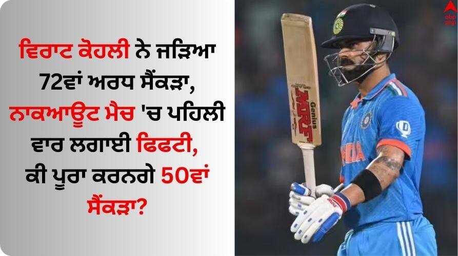 Virat Kohli IND vs NZ Semifinal: ਸ਼ੁਭਮਨ ਗਿੱਲ ਤੋਂ ਬਾਅਦ ਵਿਰਾਟ ਕੋਹਲੀ ਨੇ ਪੰਜਾਹ ਦੌੜਾਂ ਦਾ ਅੰਕੜਾ ਛੂਹ ਲਿਆ ਹੈ। ਵਿਰਾਟ ਕੋਹਲੀ ਦੇ ਵਨਡੇ ਕਰੀਅਰ ਦਾ ਇਹ 72ਵਾਂ ਅਰਧ ਸੈਂਕੜਾ ਹੈ। ਇਸ ਦੇ ਨਾਲ ਹੀ ਵਿਰਾਟ ਕੋਹਲੀ ਨੇ ਵਨਡੇ ਵਿਸ਼ਵ ਕੱਪ ਦੇ ਨਾਕਆਊਟ ਮੈਚ ਵਿੱਚ ਪਹਿਲੀ ਵਾਰ ਪੰਜਾਹ ਦੌੜਾਂ ਦਾ ਅੰਕੜਾ ਪਾਰ ਕੀਤਾ ਹੈ। ਪਰ ਕੀ ਅੱਜ ਵਿਰਾਟ ਕੋਹਲੀ ਆਪਣੇ ਅਰਧ ਸੈਂਕੜੇ ਨੂੰ ਸੈਂਕੜਾ 'ਚ ਬਦਲ ਸਕਣਗੇ? ਹਾਲਾਂਕਿ ਖਬਰ ਲਿਖੇ ਜਾਣ ਤੱਕ ਵਿਰਾਟ ਕੋਹਲੀ 71 ਗੇਂਦਾਂ 'ਤੇ 65 ਦੌੜਾਂ ਬਣਾ ਕੇ ਖੇਡ ਰਹੇ ਹਨ। ਹੁਣ ਤੱਕ ਉਹ ਆਪਣੀ ਪਾਰੀ 'ਚ 5 ਚੌਕੇ ਅਤੇ 1 ਛੱਕਾ ਲਗਾ ਚੁੱਕੇ ਹਨ। ਅੱਜ ਸਚਿਨ ਤੇਂਦੁਲਕਰ ਨੂੰ ਪਿੱਛੇ ਛੱਡ ਸਕਦੇ ਹਨ ਵਿਰਾਟ ਕੋਹਲੀ...