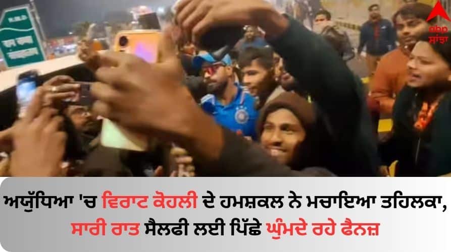 ਪ੍ਰਾਣ ਪ੍ਰਤਿਸ਼ਠਾ ਤੋਂ ਬਾਅਦ ਅਚਾਨਕ ਇਕ ਵਿਅਕਤੀ ਟੀਮ ਇੰਡੀਆ ਦੀ ਜਰਸੀ 'ਚ ਅਯੁੱਧਿਆ ਦੇ ਰੋਡ 'ਤੇ ਨਿਕਲ ਪਿਆ। ਇਹ ਵਿਅਕਤੀ ਵਿਰਾਟ ਕੋਹਲੀ ਨਾਲ ਕਾਫੀ ਹੱਦ ਤੱਕ ਮਿਲ ਰਿਹਾ ਸੀ। ਇਸ ਦੀ ਜਰਸੀ 'ਤੇ ਵਿਰਾਟ ਵੀ ਲਿਖਿਆ ਹੋਇਆ ਸੀ। ਬਸ ਫਿਰ ਕੀ ਸੀ, ਨੌਜਵਾਨਾਂ ਨੇ ਇਸ ਵਿਅਕਤੀ ਨੂੰ ਘੇਰ ਲਿਆ ਅਤੇ ਸੈਲਫੀਆਂ ਲੈਣ ਲੱਗੇ। ਇਸ ਦੌਰਾਨ ਵਿਰਾਟ ਦੇ ਡੁਪਲੀਕੇਟ ਨੇ ਵੀ ਵਿਰਾਟ ਵਾਂਗ ਹੀ ਐਟੀਡਿਊਡ ਬਣਾਈ ਰੱਖਿਆ। ਉਹ ਵਿਰਾਟ ਦੇ ਸਾਰੇ ਪ੍ਰਸ਼ੰਸਕਾਂ ਨੂੰ ਸੈਲਫੀ ਲੈਂਦੇ ਹੋਏ ਵੀ ਦੇਖਿਆ ਗਿਆ।
