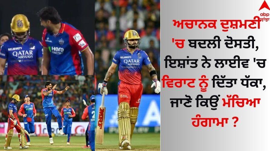 ਰਾਇਲ ਚੈਲੇਂਜਰਸ ਬੈਂਗਲੁਰੂ ਅਤੇ ਦਿੱਲੀ ਕੈਪੀਟਲਸ (RCB VS DC) ਵਿਚਕਾਰ ਚੱਲ ਰਹੇ ਮੈਚ ਵਿੱਚ ਇਸ਼ਾਂਤ ਸ਼ਰਮਾ ਨੇ IPL ਕ੍ਰਿਕਟ ਦੇ ਇਤਿਹਾਸ ਵਿੱਚ ਪਹਿਲੀ ਵਾਰ ਵਿਰਾਟ ਕੋਹਲੀ ਨੂੰ ਆਊਟ ਕੀਤਾ। ਜਿਸ ਤੋਂ ਬਾਅਦ ਇਸ਼ਾਂਤ ਸ਼ਰਮਾ ਵਿਰਾਟ ਕੋਹਲੀ ਦਾ ਵਿਕਟ ਲੈਣ ਤੋਂ ਬਾਅਦ ਕਾਫੀ ਉਤਸ਼ਾਹਿਤ ਨਜ਼ਰ ਆਏ ਅਤੇ ਇਸ ਤੋਂ ਬਾਅਦ ਜਦੋਂ ਵਿਰਾਟ ਕੋਹਲੀ ਪੈਵੇਲੀਅਨ ਵੱਲ ਪਰਤ ਰਹੇ ਸਨ ਤਾਂ ਇਸ਼ਾਂਤ ਸ਼ਰਮਾ ਉਨ੍ਹਾਂ ਨੂੰ ਮੈਦਾਨ ਦੇ ਵਿਚਕਾਰ ਧੱਕਾ ਦਿੰਦੇ ਹੋਏ ਨਜ਼ਰ ਆਏ। ਉਦੋਂ ਤੋਂ ਇਹ ਵੀਡੀਓ ਕਲਿੱਪ ਸੋਸ਼ਲ ਮੀਡੀਆ 'ਤੇ ਤੇਜ਼ੀ ਨਾਲ ਟ੍ਰੈਂਡ ਕਰ ਰਿਹਾ ਹੈ।