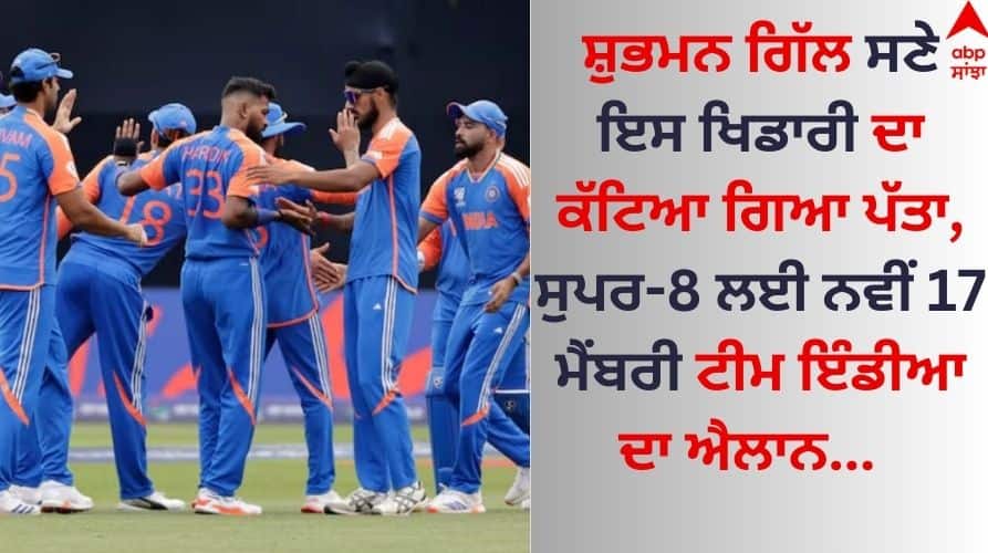 ਟੀਮ ਇੰਡੀਆ ਨੂੰ ਸੁਪਰ-8 'ਚ ਆਸਟ੍ਰੇਲੀਆ, ਬੰਗਲਾਦੇਸ਼ ਅਤੇ ਅਫਗਾਨਿਸਤਾਨ ਦੇ ਖਿਲਾਫ ਮੈਚ ਖੇਡਣੇ ਹਨ। ਜੇਕਰ ਟੀਮ ਇੰਡੀਆ ਇਨ੍ਹਾਂ ਮੈਚਾਂ ਨੂੰ ਜਿੱਤਣ 'ਚ ਸਫਲ ਰਹਿੰਦੀ ਹੈ ਤਾਂ ਸੈਮੀਫਾਈਨਲ 'ਚ ਪਹੁੰਚਣ ਦਾ ਰਸਤਾ ਵੀ ਸਾਫ ਹੋ ਜਾਵੇਗਾ। ਪਰ ਇਸ ਸੁਪਰ-8 ਤੋਂ ਪਹਿਲਾਂ ਹੀ ਭਾਰਤੀ ਟੀਮ ਵਿੱਚ ਵੱਡਾ ਬਦਲਾਅ ਹੋਇਆ ਹੈ ਅਤੇ ਟੀਮ ਦੇ ਕਈ ਖਿਡਾਰੀਆਂ ਨੂੰ ਬਾਹਰ ਕਰ ਦਿੱਤਾ ਗਿਆ ਹੈ।