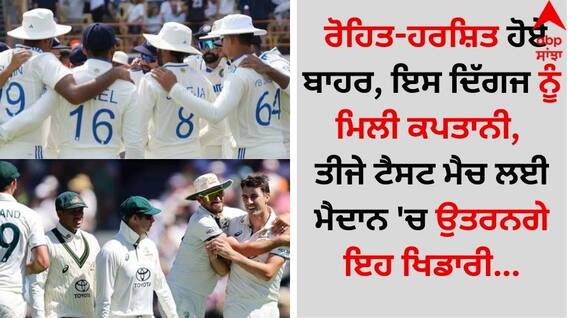14 ਦਸੰਬਰ ਤੋਂ ਬ੍ਰਿਸਬੇਨ ਦੇ 'ਦਿ ਗਾਬਾ' ਵਿੱਚ ਖੇਡੇ ਜਾਣ ਵਾਲੇ ਇਸ ਮੈਚ ਲਈ ਭਾਰਤ ਦੇ ਪਲੇਇੰਗ ਇਲੈਵਨ (IND vs AUS) ਵਿੱਚ ਕੁਝ ਵੱਡੇ ਬਦਲਾਅ ਹੋ ਸਕਦੇ ਹਨ। ਰੋਹਿਤ ਸ਼ਰਮਾ ਦੇ ਆਊਟ ਹੋਣ ਤੋਂ ਬਾਅਦ ਸਰਫਰਾਜ਼ ਖਾਨ ਨੂੰ ਮੱਧਕ੍ਰਮ 'ਚ ਬੱਲੇਬਾਜ਼ੀ ਕਰਨ ਦਾ ਮੌਕਾ ਦਿੱਤਾ ਜਾ ਸਕਦਾ ਹੈ। ਇਸ ਤੋਂ ਇਲਾਵਾ ਹਰਸ਼ਿਤ ਰਾਣਾ ਨੂੰ ਵੀ ਤੀਜੇ ਟੈਸਟ ਤੋਂ ਬ੍ਰੇਕ ਦਿੱਤੇ ਜਾਣ ਦੀ ਸੰਭਾਵਨਾ ਹੈ। ਉਨ੍ਹਾਂ ਦੀ ਥਾਂ ਅਕਾਸ਼ਦੀਪ ਜਾਂ ਪ੍ਰਸਿੱਧ ਕ੍ਰਿਸ਼ਨ ਨੂੰ ਅਜ਼ਮਾਇਆ ਜਾ ਸਕਦਾ ਹੈ। ਆਓ ਤੁਹਾਨੂੰ ਦੱਸਦੇ ਹਾਂ ਕਿ ਤੀਜੇ ਟੈਸਟ ਲਈ ਭਾਰਤ ਦੀ ਪਲੇਇੰਗ ਇਲੈਵਨ ਕਿਵੇਂ ਰਹੇਗੀ-