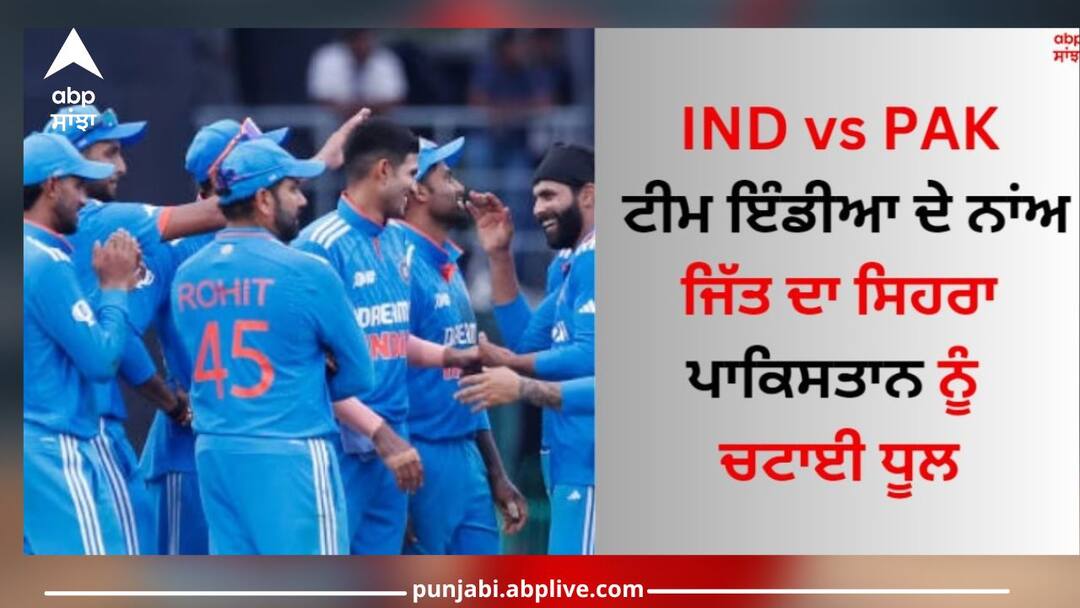 ਇਸ ਤੋਂ ਪਹਿਲਾਂ ਭਾਰਤੀ ਗੇਂਦਬਾਜ਼ਾਂ ਨੇ ਅਜਿਹੀ ਪਿੱਚ 'ਤੇ ਕਮਾਲ ਕਰ ਦਿਖਾਇਆ ਜੋ ਬੱਲੇਬਾਜ਼ਾਂ ਲਈ ਮਦਦਗਾਰ ਸੀ। ਜਸਪ੍ਰੀਤ ਬੁਮਰਾਹ, ਰਵਿੰਦਰ ਜਡੇਜਾ, ਕੁਲਦੀਪ ਯਾਦਵ, ਹਾਰਦਿਕ ਪਾਂਡਿਆ ਅਤੇ ਮੁਹੰਮਦ ਸਿਰਾਜ ਨੇ ਦੋ-ਦੋ ਵਿਕਟਾਂ ਲਈਆਂ। ਪਾਕਿਸਤਾਨ ਲਈ ਬਾਬਰ ਆਜ਼ਮ ਨੇ ਸਭ ਤੋਂ ਵੱਧ 50 ਦੌੜਾਂ ਬਣਾਈਆਂ।
